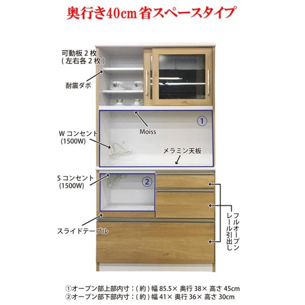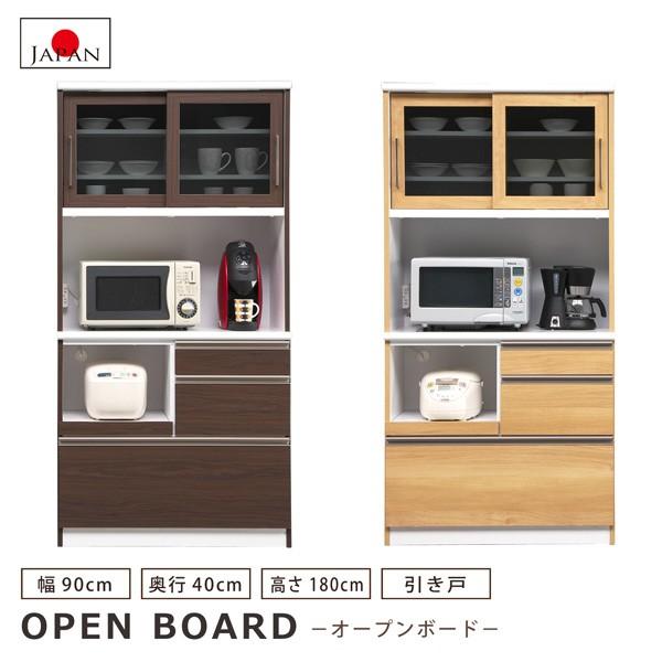 食器棚 幅90 奥行40 高さ180 オープンボード 国産 引き戸 引き出し