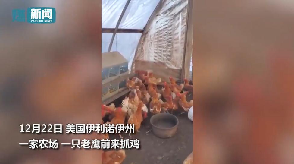 老鹰飞进鸡棚本想来顿自助大餐 不料遭群鸡猛