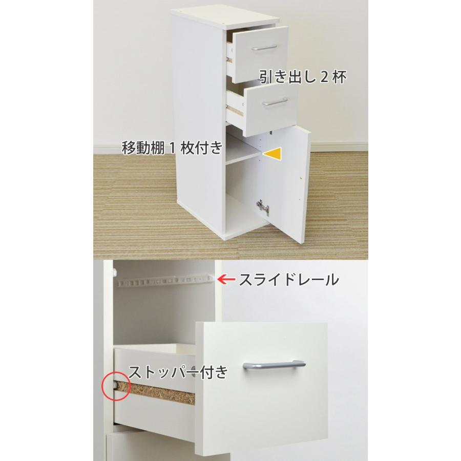 キッチン収納 すき間収納 スリムチェスト 引出し 2段 スレンダー 幅