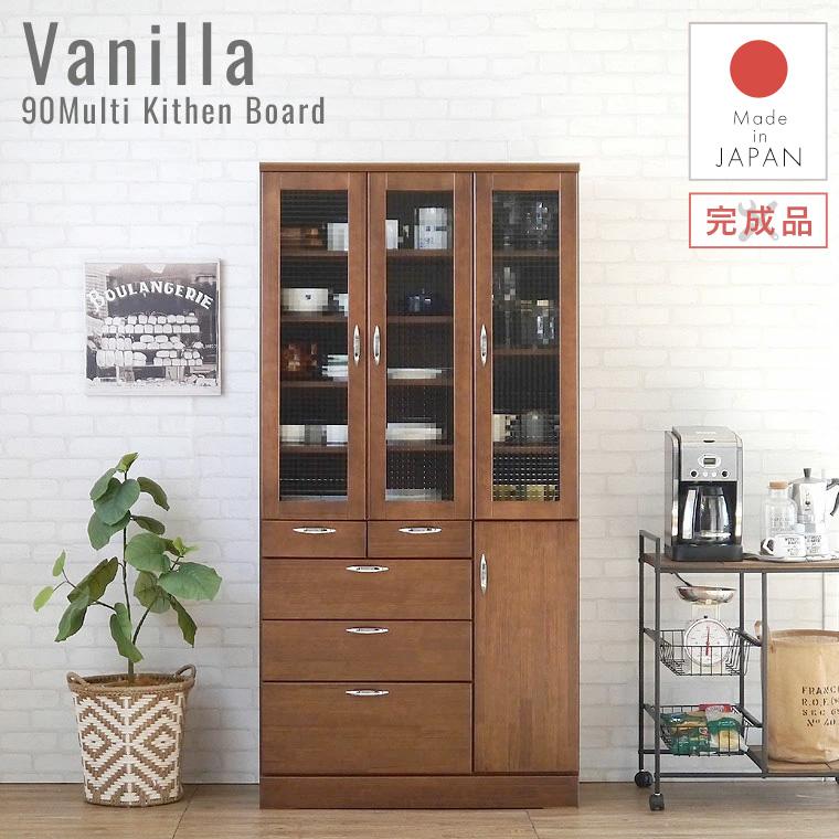 食器棚 90 完成品 キッチンボード おしゃれ バニラ90マルチ ブラウン