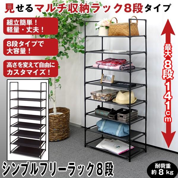 シンプルフリーラック8段 棚付き 8段 組立式ディスプレイラック 洋服