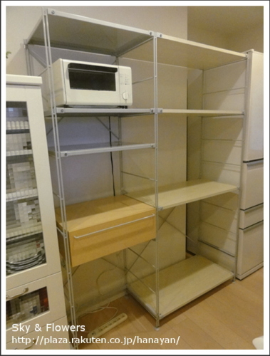キッチン 無印ユニットシェルフの棚板を追加 Sky Flowers