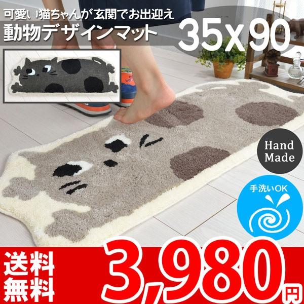 玄関マット ネコ 35 90 アニマル柄 動物 室内 マット かわいい