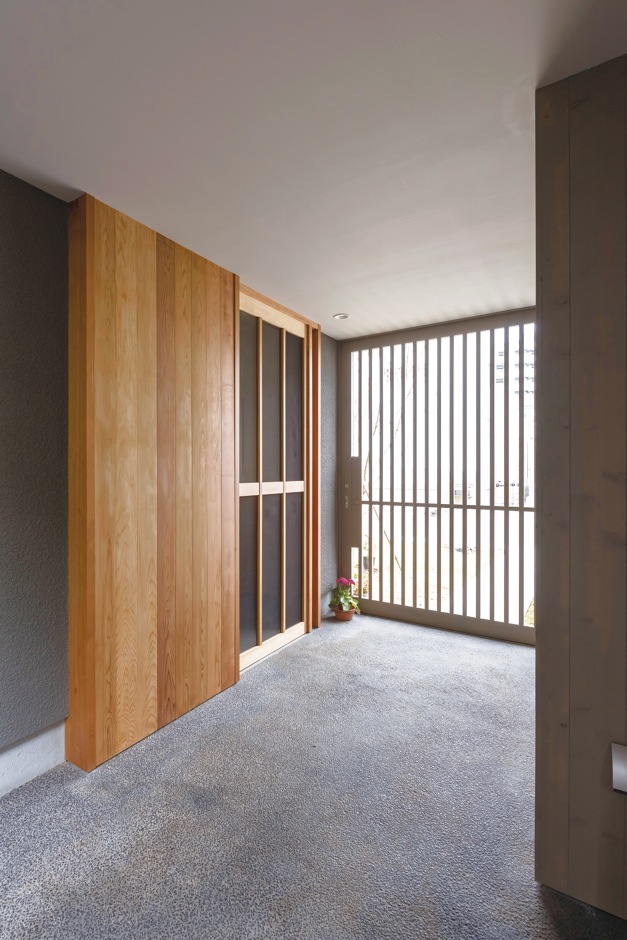 アプローチから格子戸を開けて玄関ポーチへと入ってすぐのところに 外