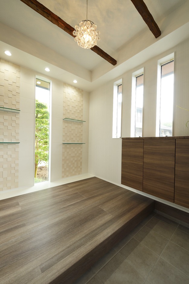玄関収納上部にペトラスクエア 窓有 玄関 エコカラット施工例 エコ