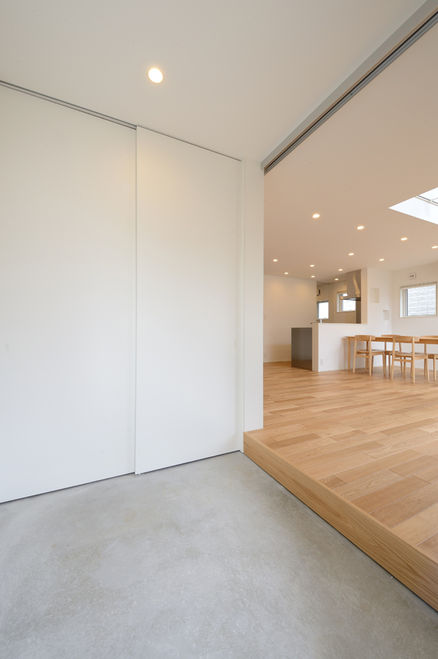Ldkに 面したコンクリートの玄関土間が 屋外と室内をゆるやかに結ぶ