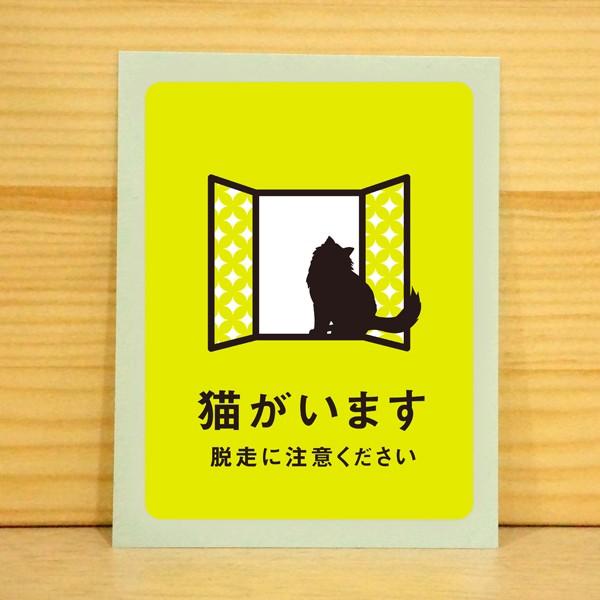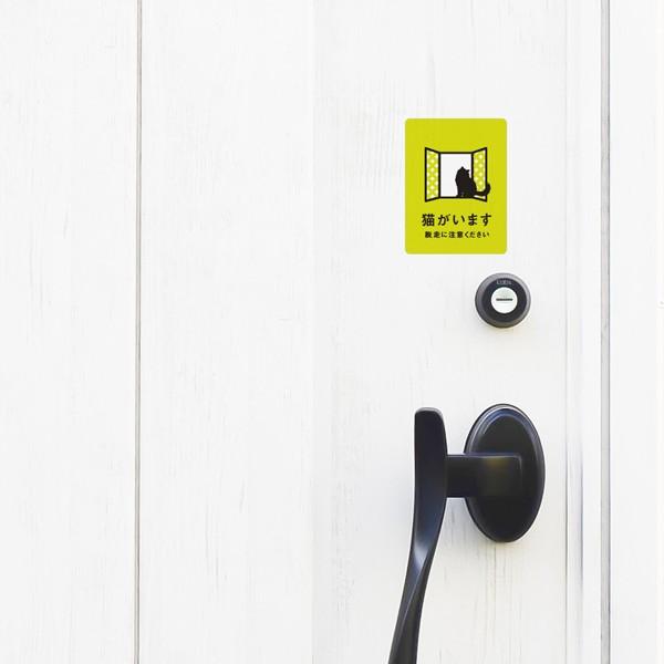 猫がいますステッカー 黄緑 脱走防止ステッカー 猫の為の玄関対策