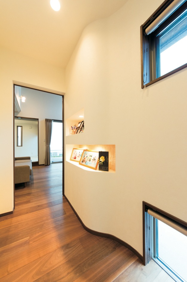 玄関ホールにニッチを設けて リビングへのアクセスを楽しくさせた