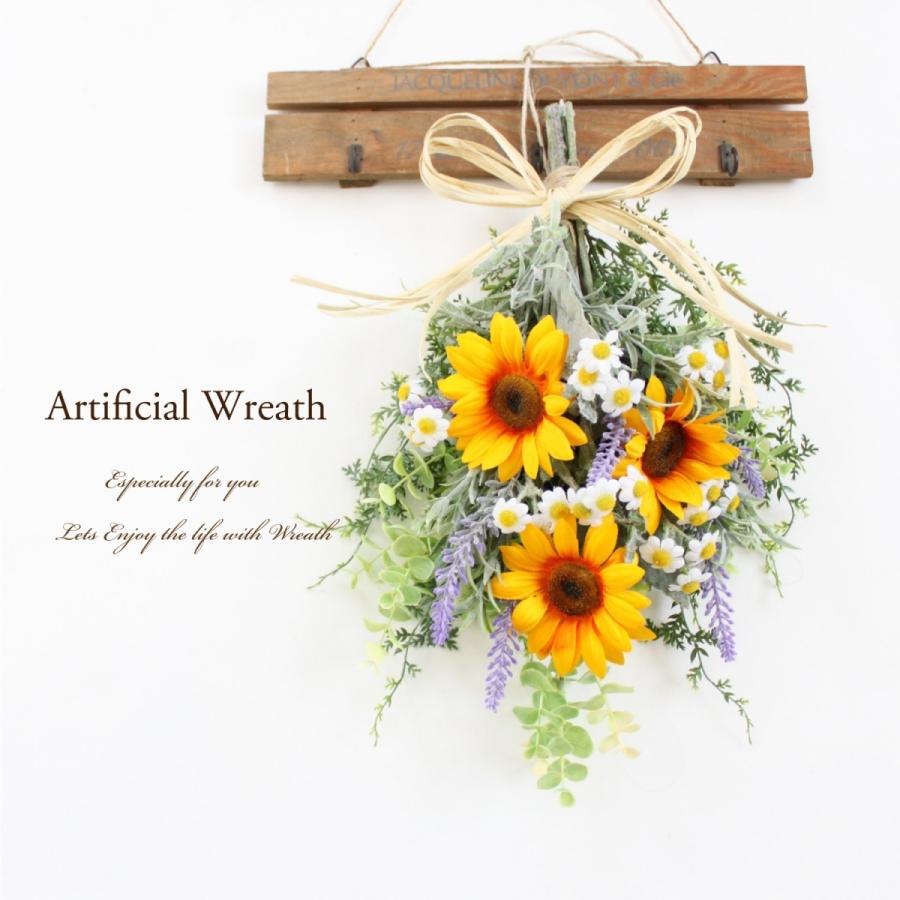 リース ひまわり ラベンダー 花 玄関ドア 造花 スワッグリース 夏