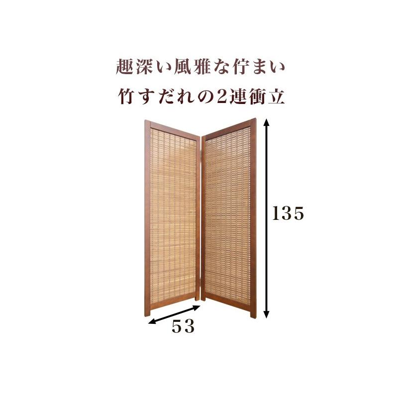 衝立 2連 高さ135cm 竹 玄関 間仕切り 和風 屏風 パーティション