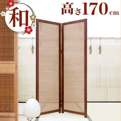 衝立 2連 高さ170cm 竹 玄関 間仕切り 和風 屏風 透け感 涼しげ