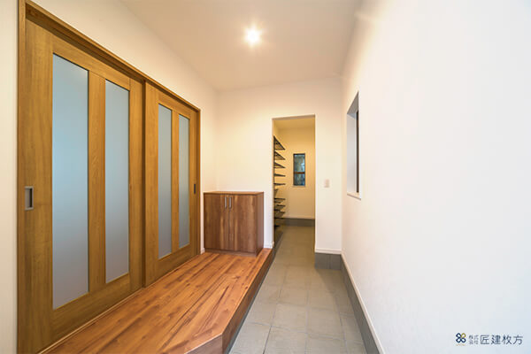 玄関ってどのくらいの広さがいるのかしら 間取りを考える時に迷うことの1つは 部屋の大きさ どこかの部屋を大きくしたいなら どこかの部屋を狭くする必要が出てきますからね 玄関ホールは リビングのように人が長居する場所ではないので削ってしまいがちですが 狭い玄関. 玄関収納は広い空間を取るのが難しい場所 いま玄関にあると便利なモノ に絞って収納をしましょう 出かける前にバタバタしない 便利な玄関を目指してくださいね 大木聖美さん プロフィール. 玄関クローゼットは一部を靴箱に 一部を服掛けに これだけ大きければ 靴はシーズンのオンオフに関わらず収納できます 服掛けとして使うなら コートをここで脱いでリビングに上がれて楽ですね 広い玄関 吹き抜け 蹴込みなし階段.