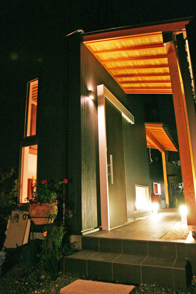 庇付の玄関 薪ストーブがある家 玄関事例 Suvaco スバコ