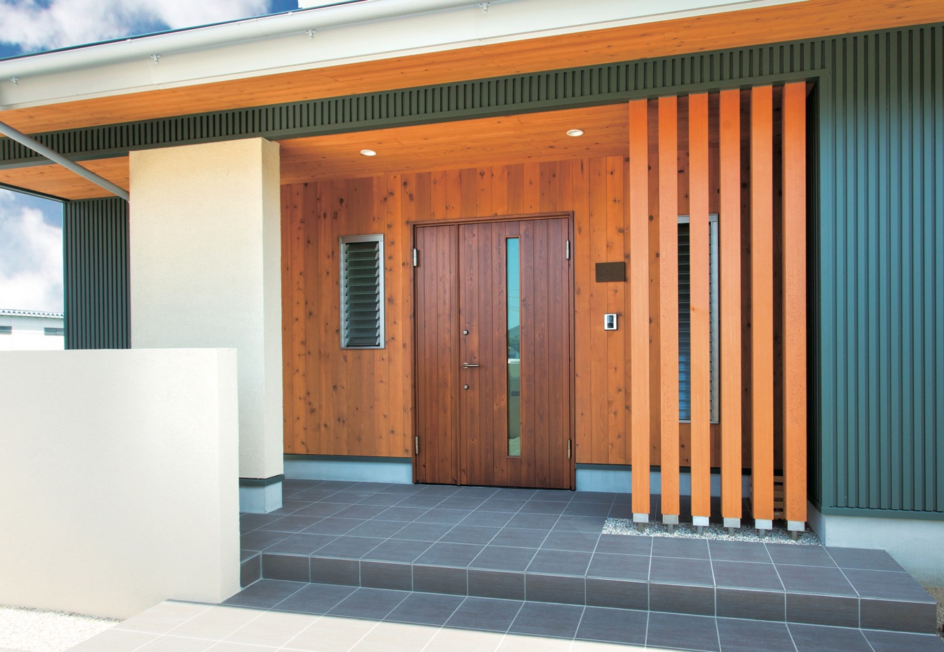 低く構えた庇 組子と格子の建具が凛とした玄関 Fevecasa フェブカーサ