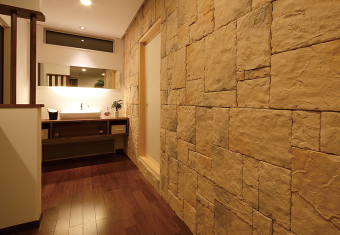 玄関横にお客様用の おしゃれな洗面台を ゲストを招きたくなる家を