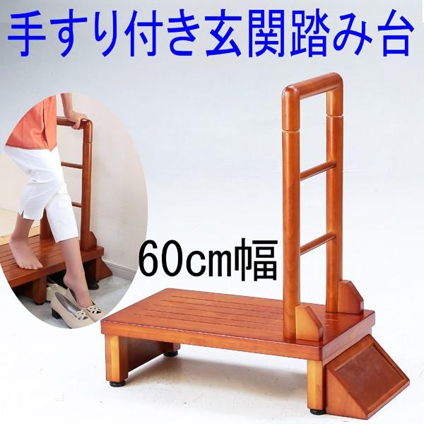 手すり付き玄関台 幅60cm 木製 アジャスター付 手すり 踏み台 玄関