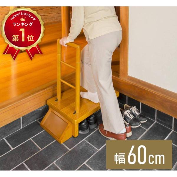 玄関踏み台 木製 手すり付き 介護 玄関台 60cm 収納 手すり ステップ