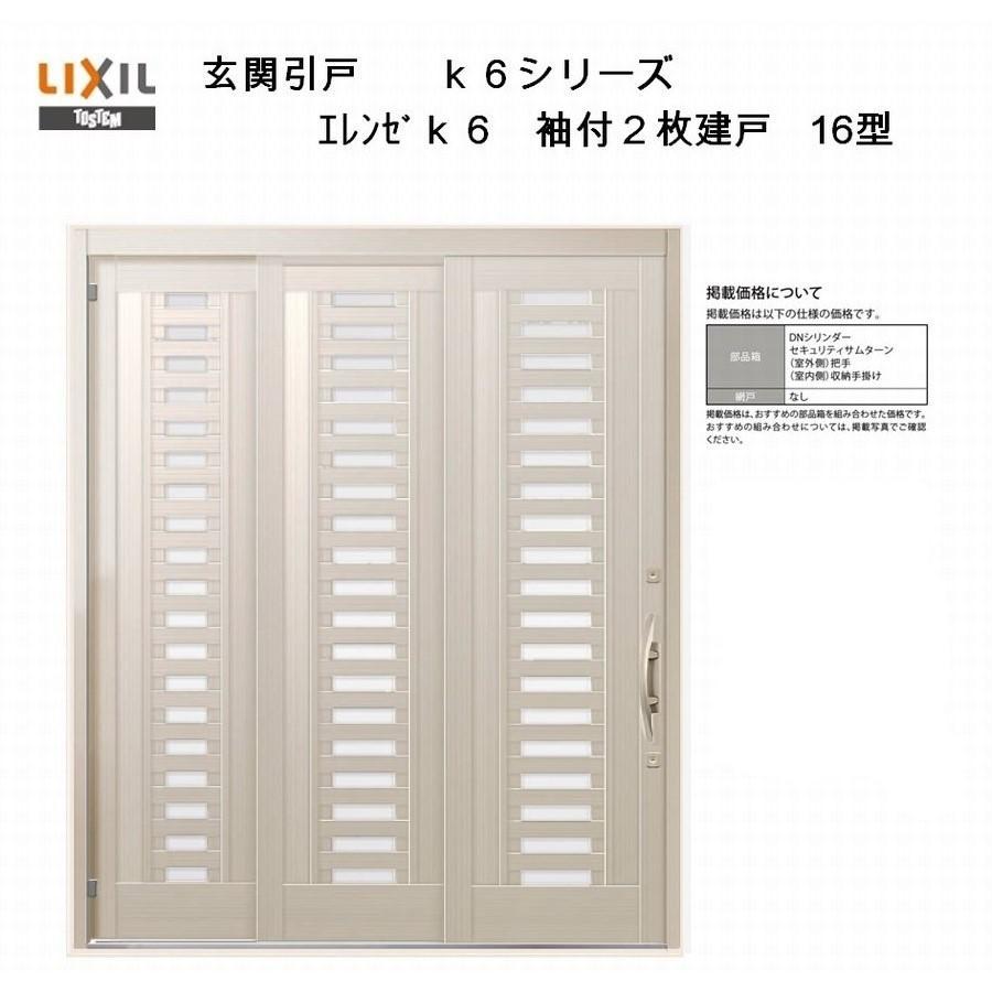 玄関引き戸 エレンゼ K6 16型 半外付型 袖付き2枚建戸 Lixil アルミ