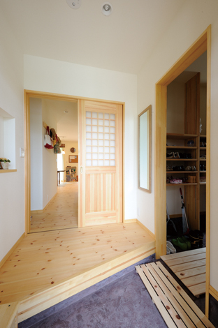 玄関ホール 小上がり畳コーナーでリビングを開放した住まい 玄関事例 Suvaco スバコ