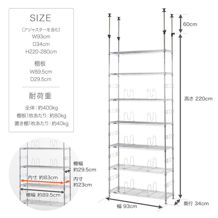 ルミナス正規販売店 突っ張りラック 天井 つっぱり 幅93 奥行35 7段