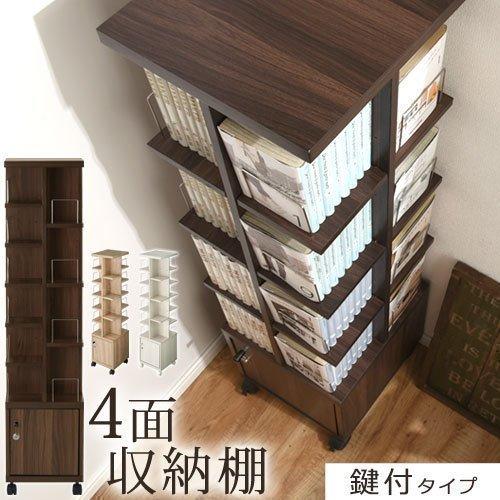 本棚 収納棚 鍵付き 扉 おしゃれ 木製 奥行30 細い キャスター付き 本棚 ラック 本 大容量 スリム 省スペース 回転 ディスプレイラック 書棚 Abt100020 デザイン家具通販like Ai