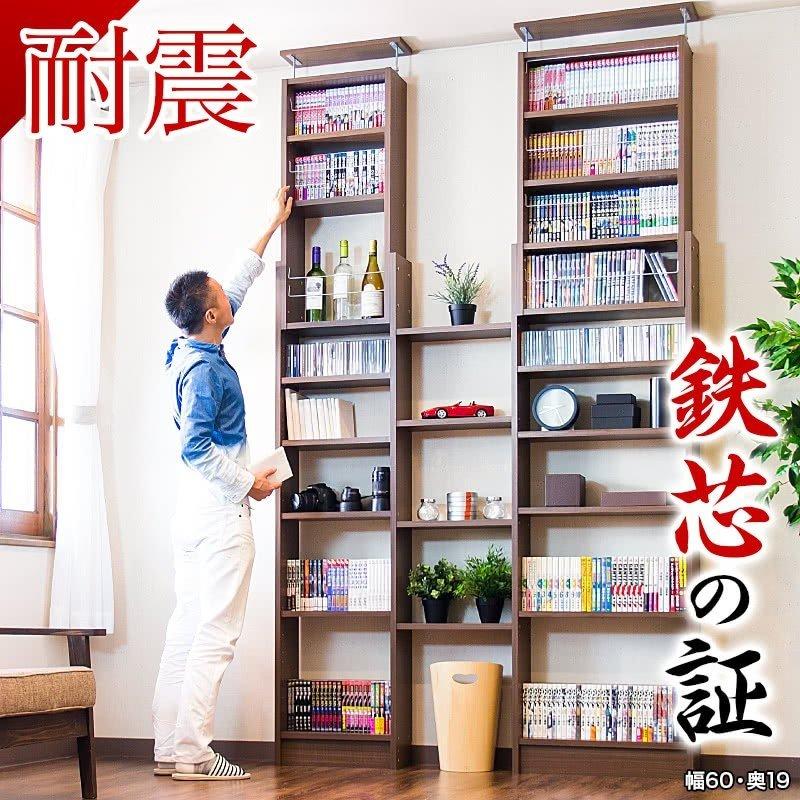 本棚 耐震本棚 突っ張り 転倒防止 壁面収納 薄型 幅60 奥行19 Aku1003123 本棚 テレビ台 電話台の家具ドキ 通販 Yahoo ショッピング