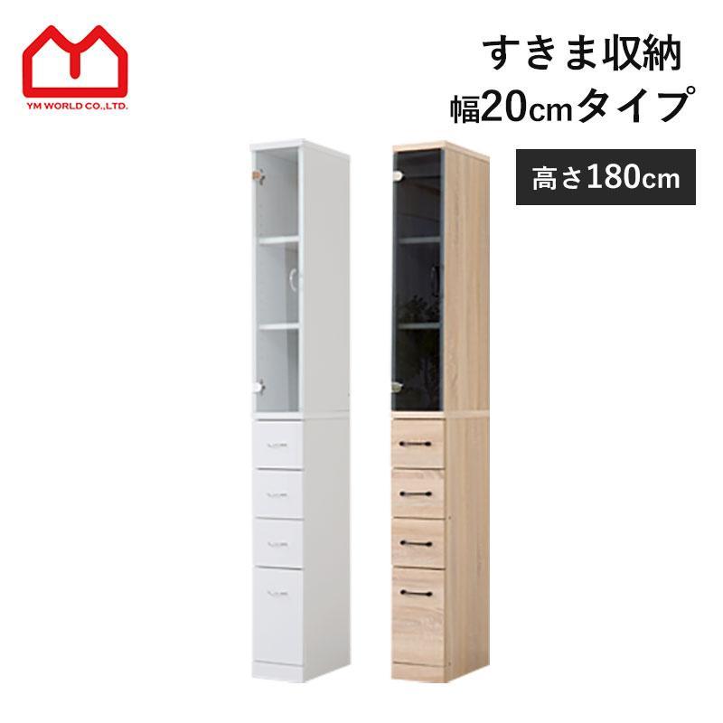 Lohaco キッチン収納 すき間収納 食器棚 ガラスキャビネット 4段 スレンダー 幅20cm 収納棚 すき間 隙間 スリムラック ホワイト シンプル 白 キッチン 台所 ランドリー 玄関 スリム 省スペース 洗面所 脱衣所 キッチン収納 リビングート ロハコ店