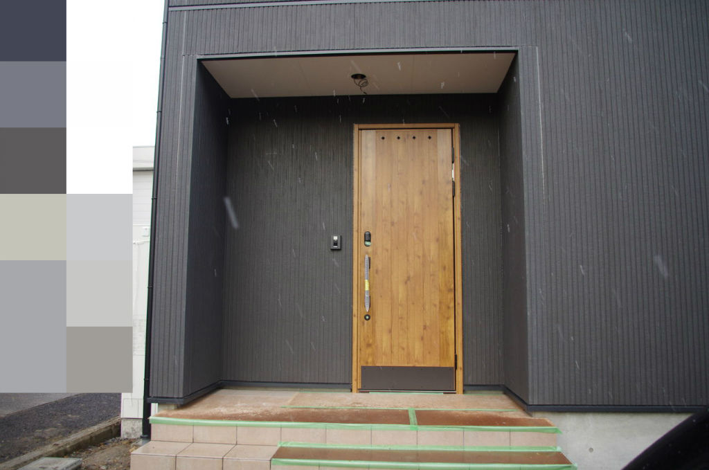 玄関 入り口 外壁 黒 玄関タイル ケイミュー外壁 リクシルの玄関ドアの