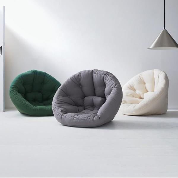 北欧デザインの1人掛け座椅子 包み込まれる不思議な形 ネイビー