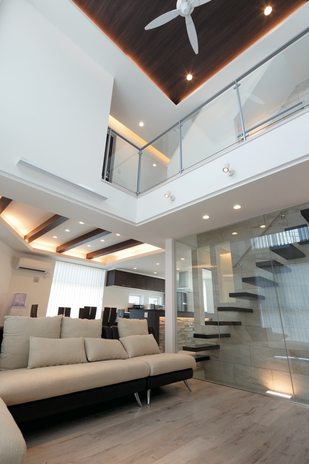2階リビングはダイナミックな吹抜けを採用 宙に浮かんでいるように
