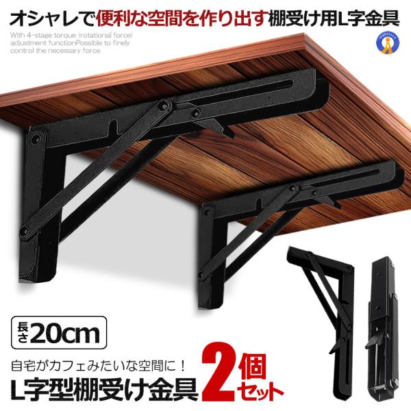 棚受け金具 L字型 2本セット 20cmタイプ ブラック 棚支え ブラケット