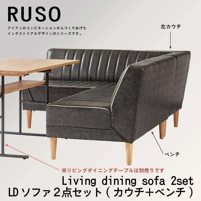 Ruso リビングダイニングソファ2点セット カウチ ベンチ 受注生産